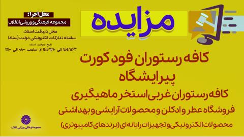 برگزاری مزایده بهرهبرداری از چند واحد صنفی در مجموعه فرهنگی و ورزشی انقلاب
